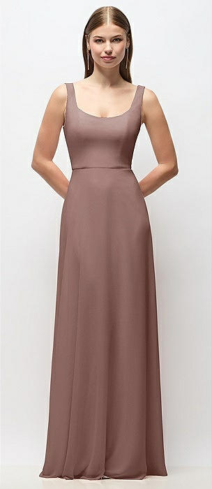 Scoop Neck Tank Strap Chiffon Maxi Dress in sienna