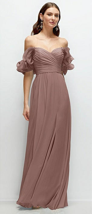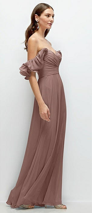 Off-the-Shoulder Basque Neck Maxi Dress with Flounce Sleeves in sienna