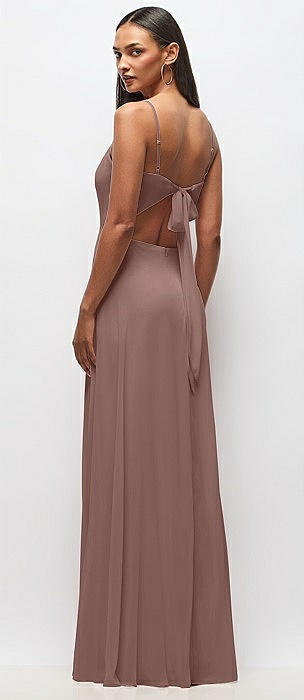 Cowl Neck Chiffon Maxi Dress with Hand-Worked Petal Straps in sienna