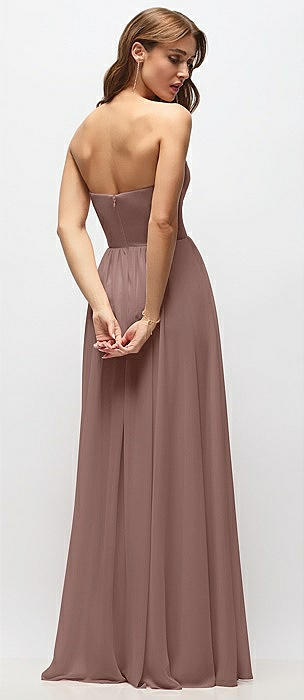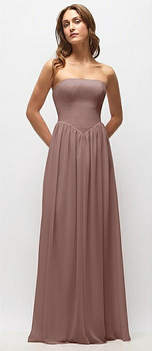 Strapless Basque Drop Waist Chiffon Maxi Dress with Shirred Skirt in sienna