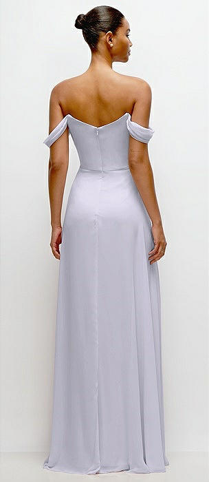 Bow-Shoulder V-Back Chiffon Gown with Front Slit in silver dove