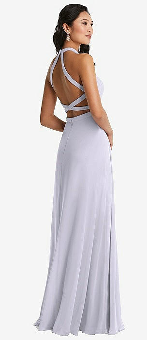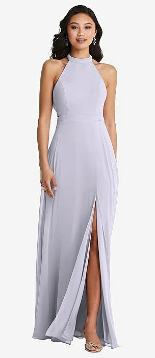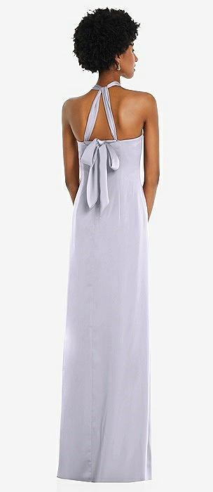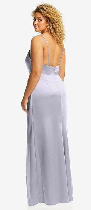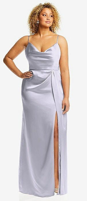 Cowl-Neck Draped Wrap Maxi Dress with Front Slit in silver dove