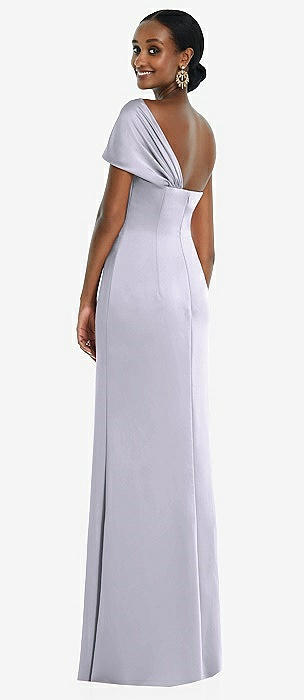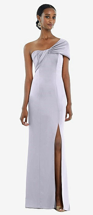 Twist Cuff One-Shoulder Princess Line Trumpet Gown in silver dove