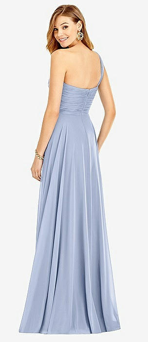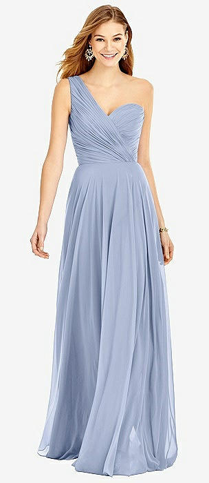 One-Shoulder Draped Chiffon Maxi Dress - Dani in sky blue