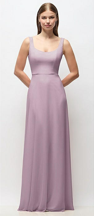 Scoop Neck Tank Strap Chiffon Maxi Dress in suede rose