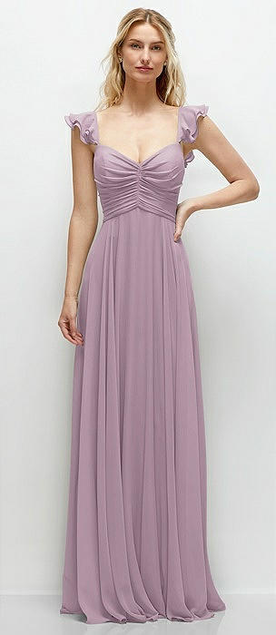 Convertible Ruffle Strap Chiffon Maxi Dress with Full Circle Skirt in suede rose