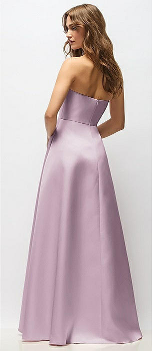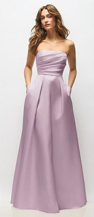 Strapless Hand-Pleated Bodice Satin Maxi Dress with Full Pleated Skirt in suede rose