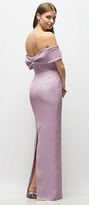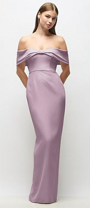 Off-the-Shoulder Crepe Column Maxi Dress with Bow-Pinch Detail in suede rose