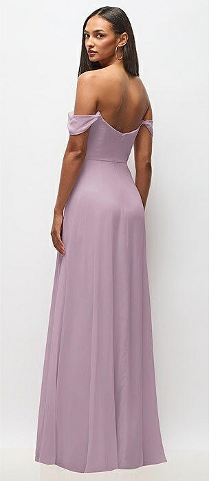 Off-the-Shoulder Draped Neckline Maxi Dress in suede rose