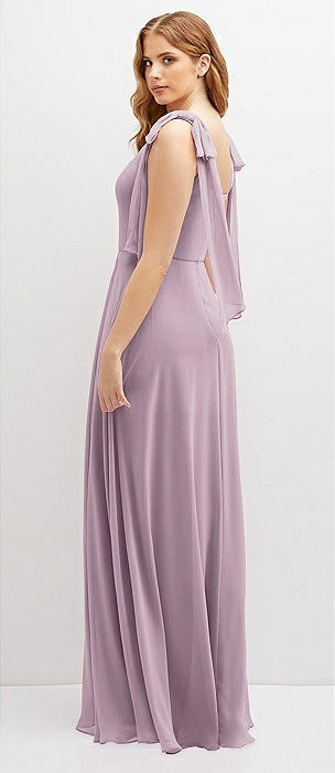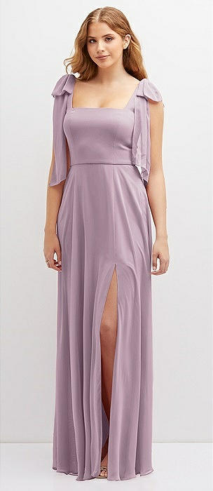 Bow Shoulder Square Neck Chiffon Maxi Dress in suede rose