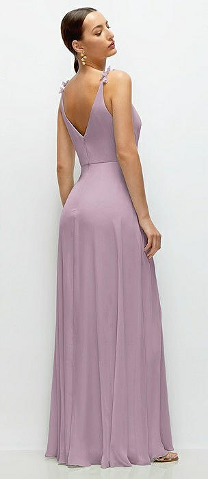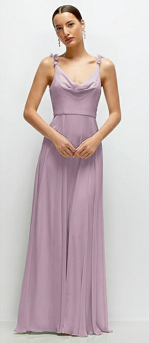 Cowl Neck Chiffon Maxi Dress with Hand-Worked Petal Straps in suede rose