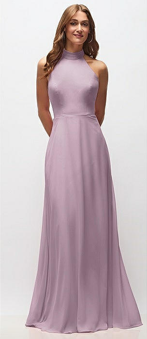 High-Neck Halter Chiffon Maxi Dress with Adjustable Spaghetti Straps in suede rose