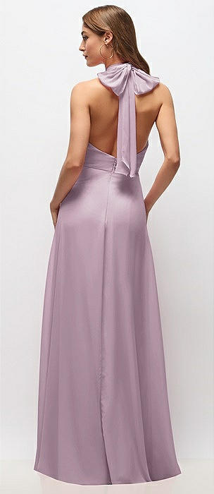 Tie Halter Open Back Trumpet Gown in suede rose
