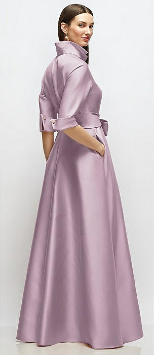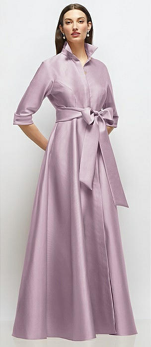 3/4 Sleeve Satin Shirt Dress Gown with Sash and Jeweled Buttons in suede rose