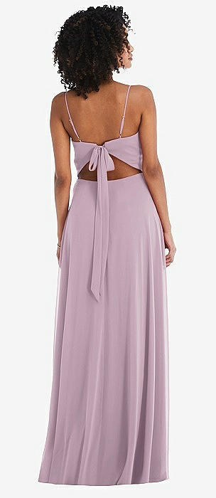 Tie-Back Cutout Maxi Dress with Front Slit in suede rose