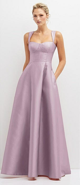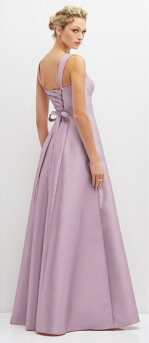 Lace-Up Back Bustier Satin Dress with Full Skirt and Pockets in suede rose