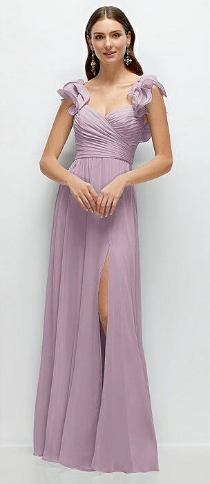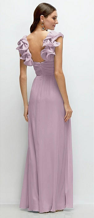 Dramatic Ruffle Edge Strap Chiffon Maxi Dress in suede rose
