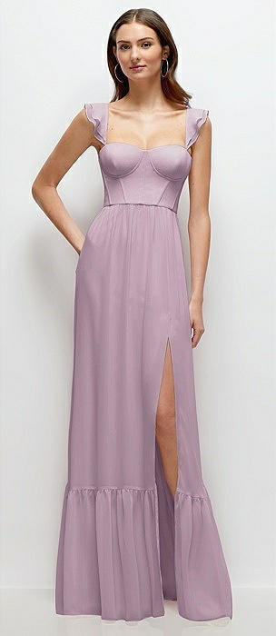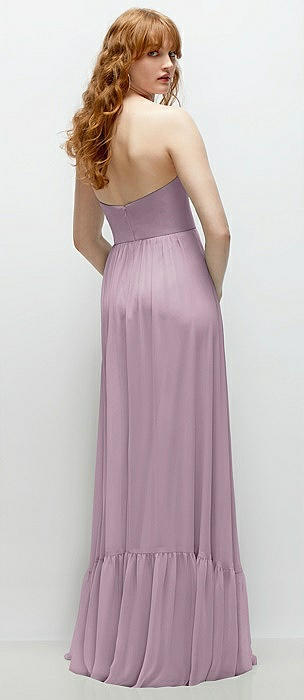 Ruffle Strap Chiffon Bustier Maxi Dress with Ruffle Hem A-Line Skirt in suede rose