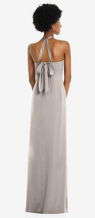 Stand Collar Cutout Tie Back Maxi Dress with Front Slit in taupe
