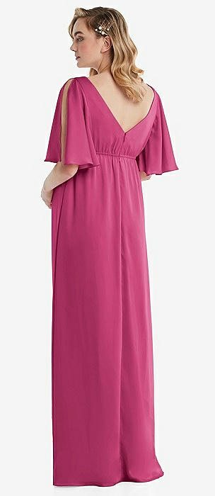 Flutter Bell Sleeve Empire Maternity Dress in tea rose