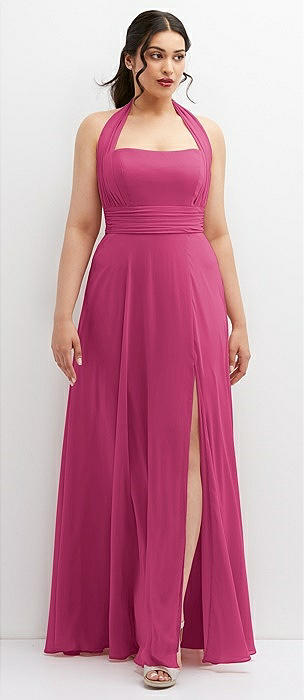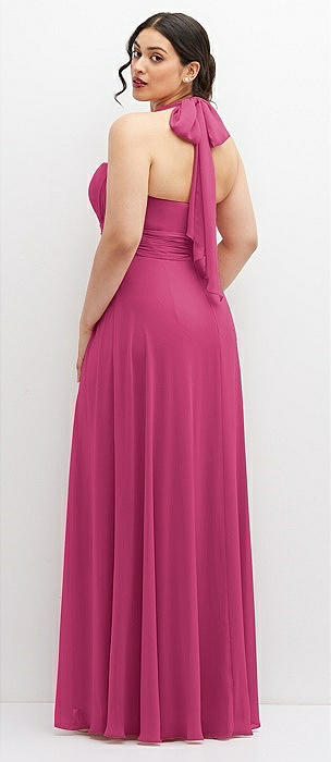 Diamond Halter Maxi Dress with Adjustable Straps in tea rose