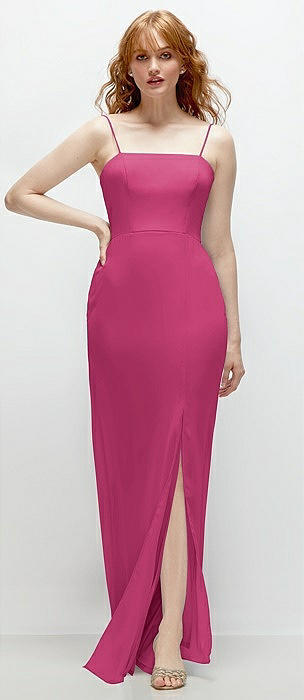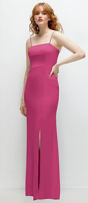 Cowl-Neck Wide Strap Crepe Trumpet Gown with Front Slit in tea rose