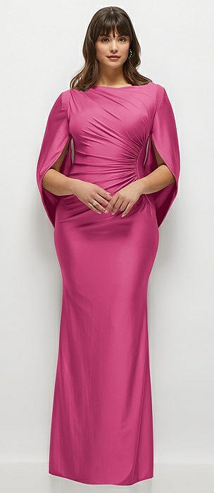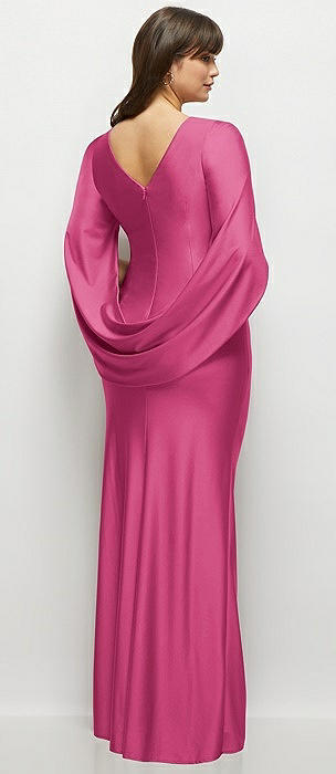 Draped Stretch Satin Maxi Dress with Built-in Capelet in tea rose