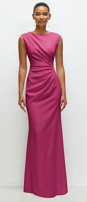 Sleeveless Cap Shoulder Crepe Maxi Dress with Trumpet Skirt in tea rose