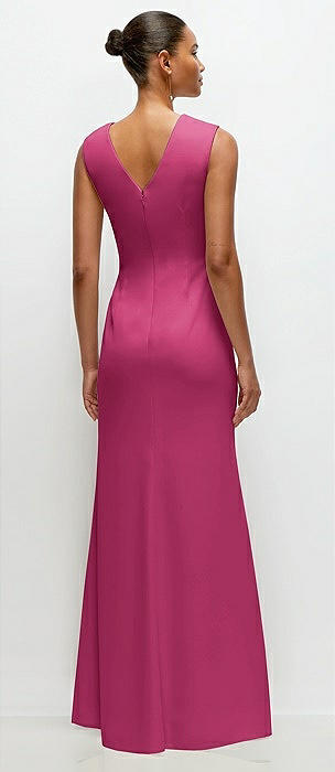 Notch Crepe Trumpet Gown with Front Slit in tea rose