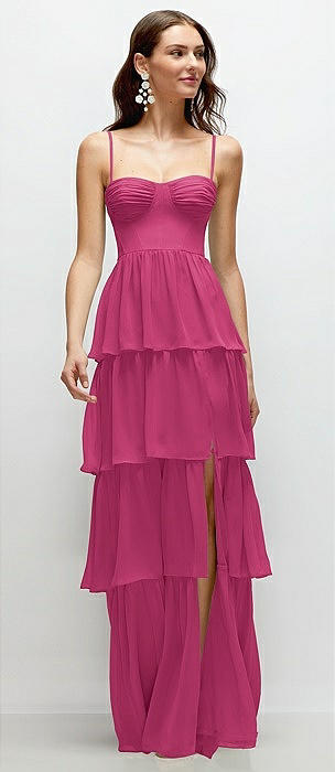 Bustier-Style Chiffon Tiered Ruffle Maxi Dress with Adjustable Straps in tea rose