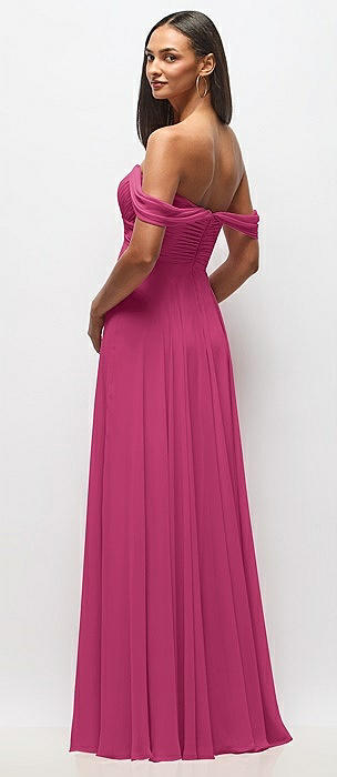 Off-the-Shoulder Draped Chiffon Maxi Dress in tea rose