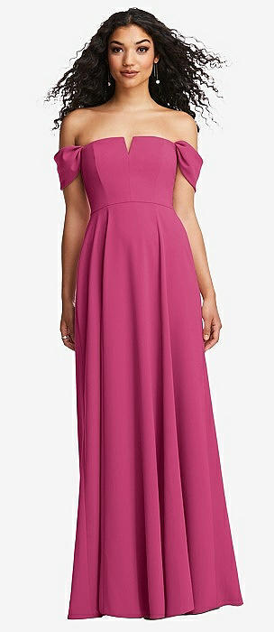 Cuffed Off-the-Shoulder Pleated Faux Wrap Maxi Dress in tea rose