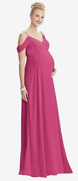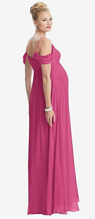 Draped Cold-Shoulder Chiffon Maternity Dress