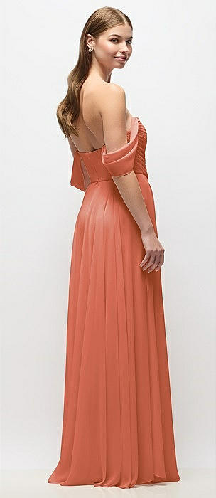 Chiffon Corset Maxi Dress with Removable Off-the-Shoulder Swags in terracotta copper