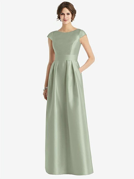 Cap Sleeve Pleated Skirt Dress with Pockets in sage
