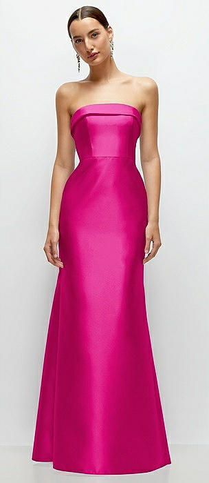 Strapless Cuff Neckline Satin Trumpet Gown in think pink