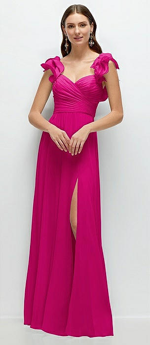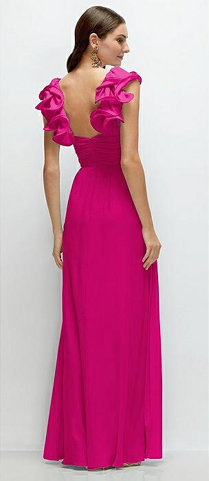 Dramatic Ruffle Edge Strap Chiffon Maxi Dress in think pink
