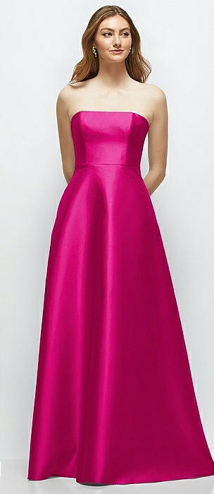 Strapless A-Line Stretch Satin Maxi Dress in think pink