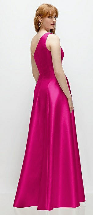 Bow One-Shoulder Full A-Line Satin Maxi Dress in think pink