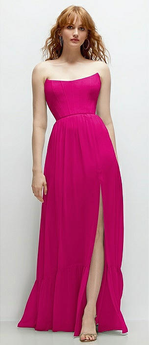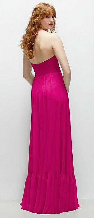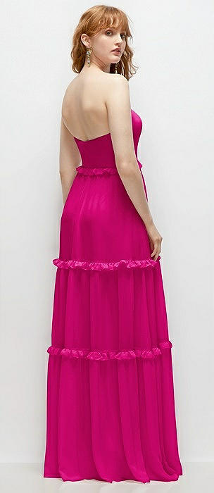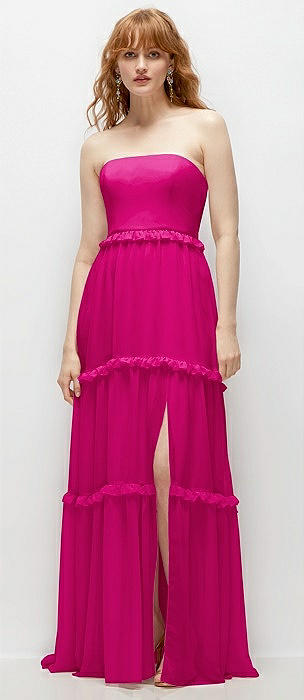 Strapless Chiffon Maxi Dress with Tiered Micro Ruffle Full Skirt in think pink