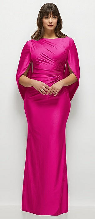 Draped Stretch Satin Maxi Dress with Built-in Capelet in think pink