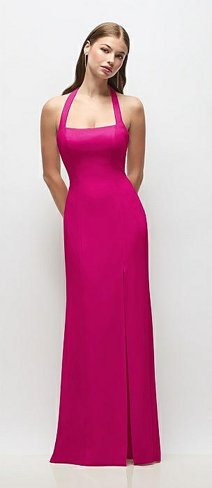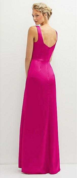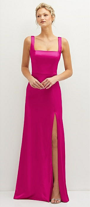 Square-Neck Satin A-line Maxi Dress with Front Slit in think pink