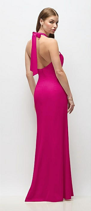 Tie Halter Open Back Trumpet Gown in think pink