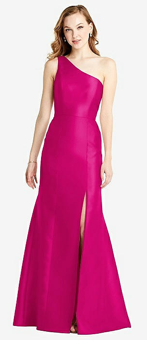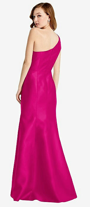 Bow One-Shoulder Satin Trumpet Gown in think pink