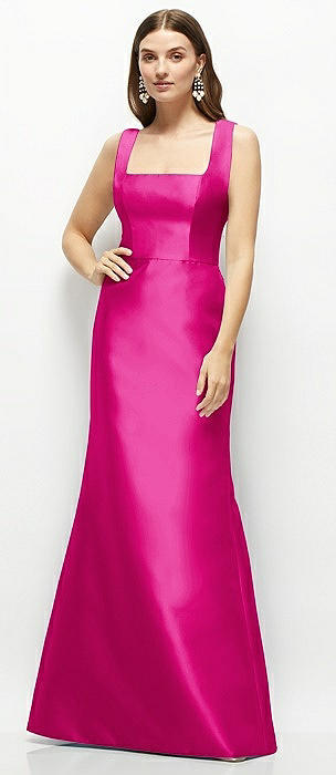 Satin Square Neck Fit and Flare Maxi Dress in think pink