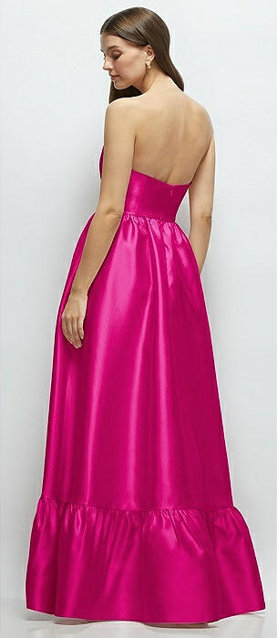 Lace-Up Back Bustier Satin Dress with Full Skirt and Pockets in think pink