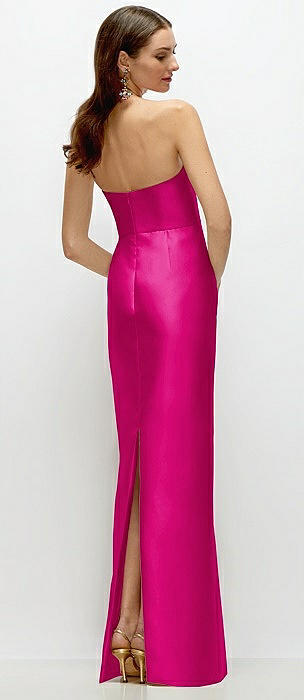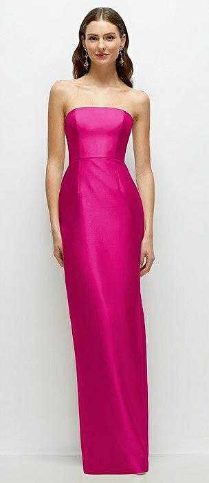 Strapless Satin Column Dress with Back Slit in think pink