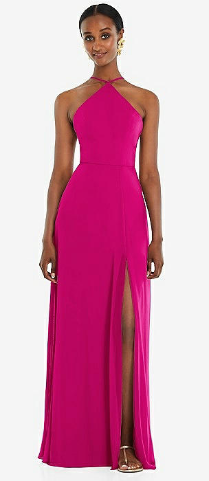 Diamond Halter Maxi Dress with Adjustable Straps in think pink