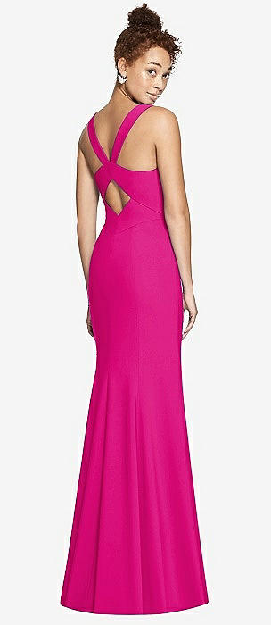 Off-the-Shoulder Criss Cross Back Trumpet Gown in think pink