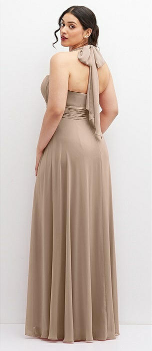 Draped Chiffon Grecian Column Gown with Convertible Straps in topaz